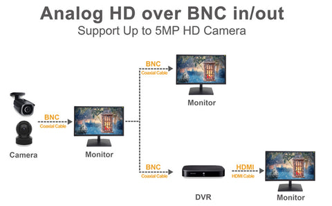 - Enhanced Monitoring Capabilities for Home Security: Elevate your home security with our surveillance monitor. With 1x BNC outputs, you can expand your system effortlessly, connecting additional monitors or recording devices for comprehensive surveillance coverage.